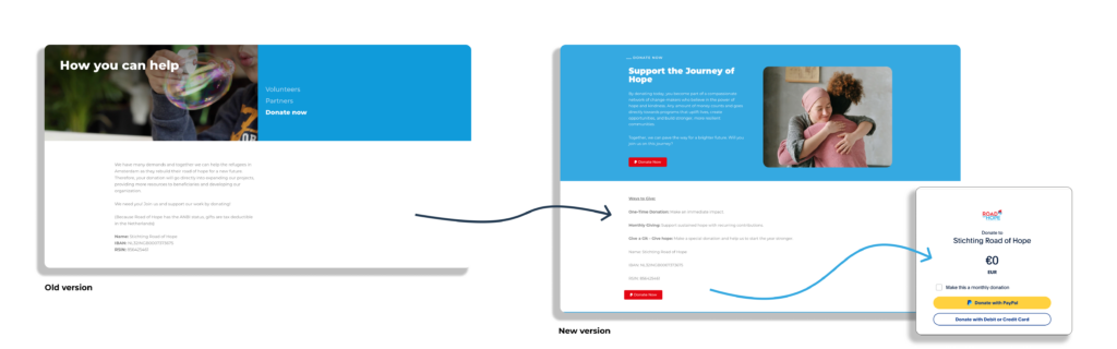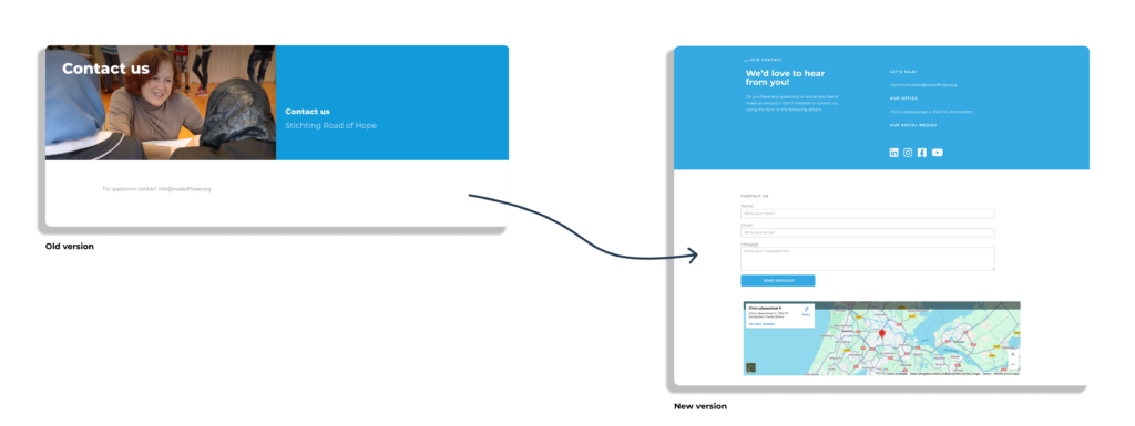 We concluded that the new Road of Hope website has a more intuitive user flow, making the experience easier. We are looking for a more appealing and engaging textual language that makes people feel part of the community.